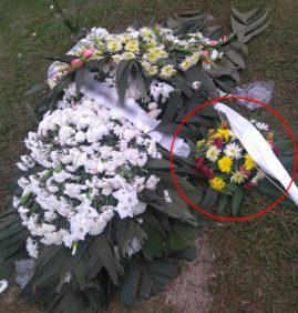 Quando recebemos o aviso a tempo, conseguimos substituir essas coroas e enviar um arranjo apropriado. Porém, há casos em que o cliente só percebe o problema diante da cerimônia, quando já não há como corrigir.